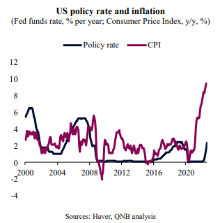 First, even if inflation in the US moderates significantly, it would still be well above the 2% target. In the past, every time US inflation breached the 5% mark, the price spiral problem was not contained before policy rates were aggressively hiked to a level that was at least as high as peak inflation. We do not see policy rates surpassing the likely 9.1% “peak inflation” of June this year, but the terminal rate of 3.8% that the market is currently pricing looks excessively optimistic.