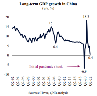 Importantly, Chinese growth stood even still last quarter. This was the worst economic performance of China in more than 30-years, excluding Q1 2020, when the country rapidly reacted to the initial wave of the Covid-19 pandemic. The weak print came on the back of a gradual but protracted slowdown that started about a year ago, after the strong initial recovery from the pandemic.