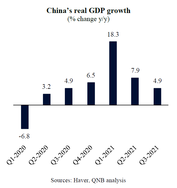 All in all, the real estate and export sectors were the main driving forces of the Chinese economy since the Covid-19 shock. However, policy tightening and real estate headwinds are already contributing to a significant slowdown. Moreover, energy supply constraints are starting to also negatively affect the export sector. Hence, we expect to see growth in China to decelerate further in Q4 2021, before re-gaining momentum next year, as the impact of policy tightening fades and supply constraints ease.