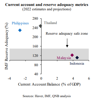 Our analysis delves into the current account position and FX reserves of the four large emerging economies of the Association of Southeast Asian Nations (ASEAN), namely Indonesia, Thailand, Malaysia and the Philippines, drawing conclusions about their resilience against potential global or regional shocks.